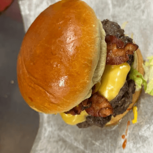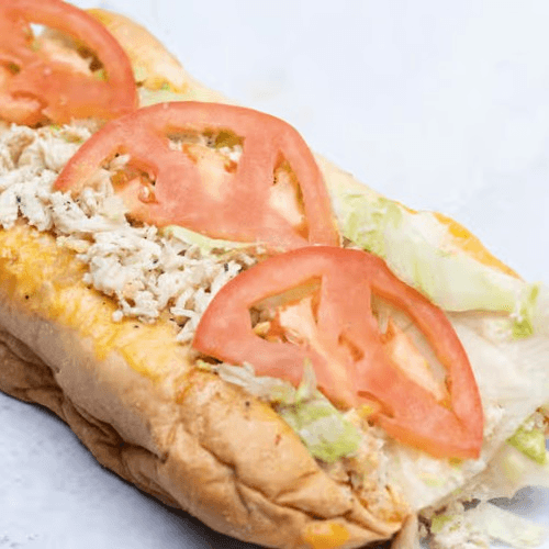 Seasoned Chopped Chicken Breast, Grilled Onions, American Cheese, Lettuce, Tomatoes, Honey Mustard, Mayo on a Fresh Steak Bun